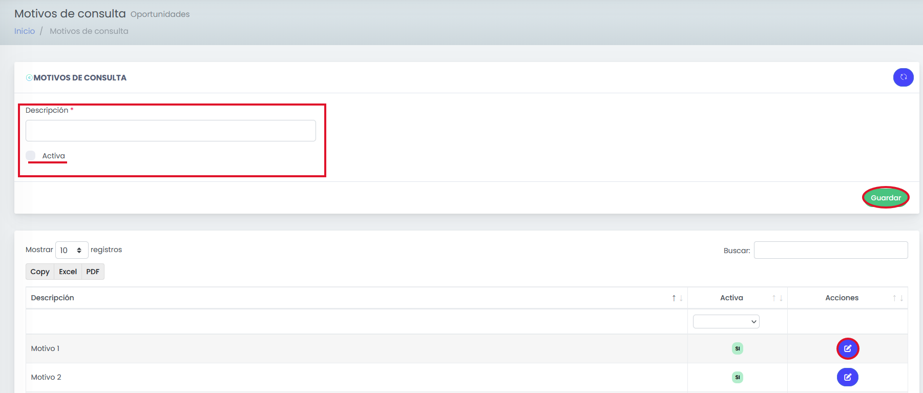 "Motivos de Pérdida" nos permiten categorizar las razones por las