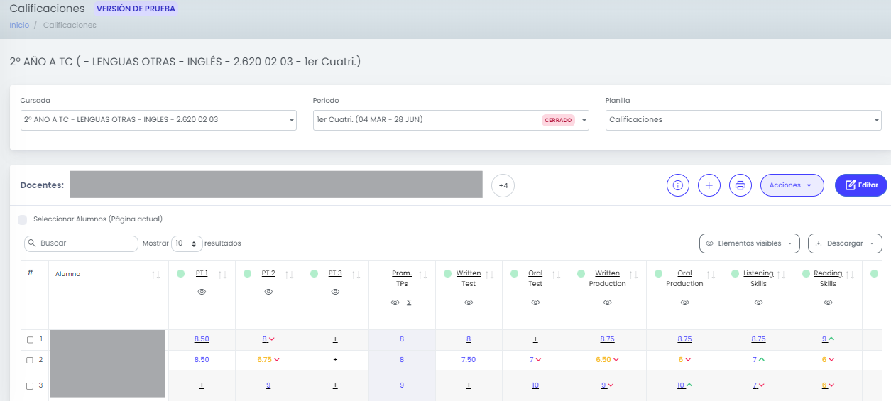 Los usuarios que ingresan con rol de Preceptor pueden visualizar y gestionar más fácilmente las cursadas de los cursos que tienen asignados, sin necesidad de cambiar al rol Docente.
