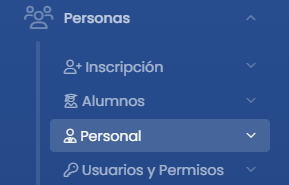 El alta de personas en el sistema se realiza desde el menú Personas, dentro del módulo correspondiente según el tipo de perfil que se desee crear.