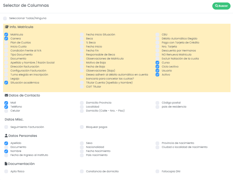 ACLARACIÓN: Este buscador únicamente busca personas activas. Para buscar por ejemplo alumnos inactivos, utilizar el buscador avanzado de alumnos