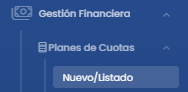 Para ello podemos ingresar a Gestión Financiera -> Planes de Cuotas -> Nuevo/Listado.