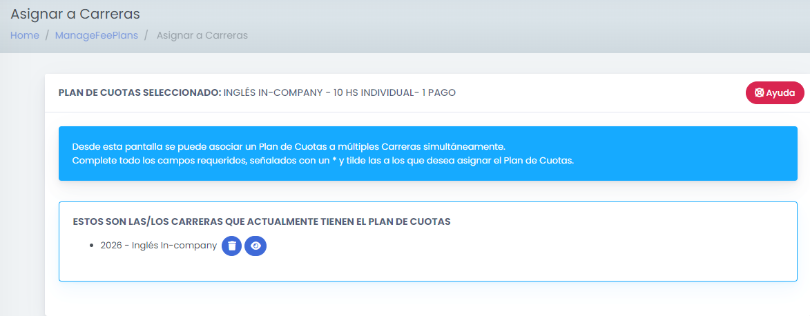 Para el Plan de Cuotas que queremos actualizar, ingresamos a la opción de "Asignar a Carreras".