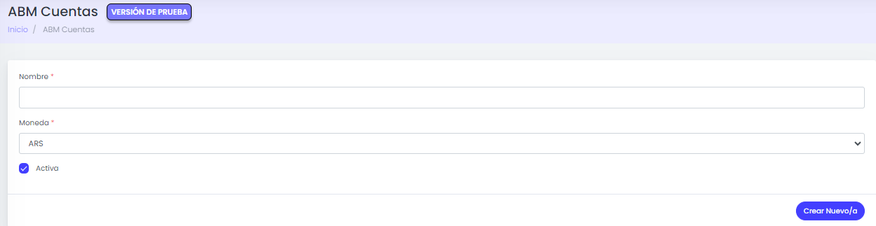 Esta funcionalidad permite asociar una moneda a cada cuenta dentro del sistema.