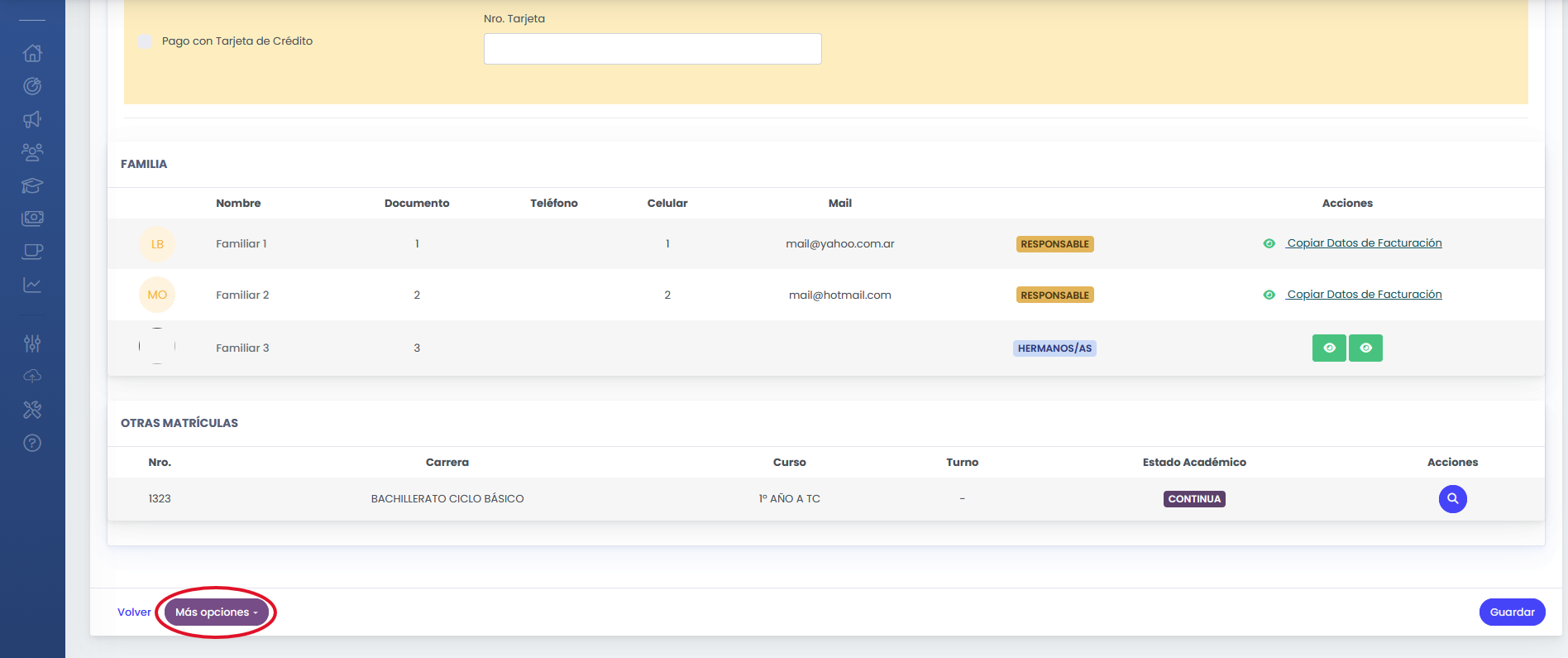- En la parte inferior seleccionamos el botón "Más Opciones"