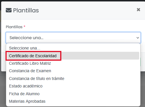 - Se debe activar la plantilla de Certificado de Escolaridad