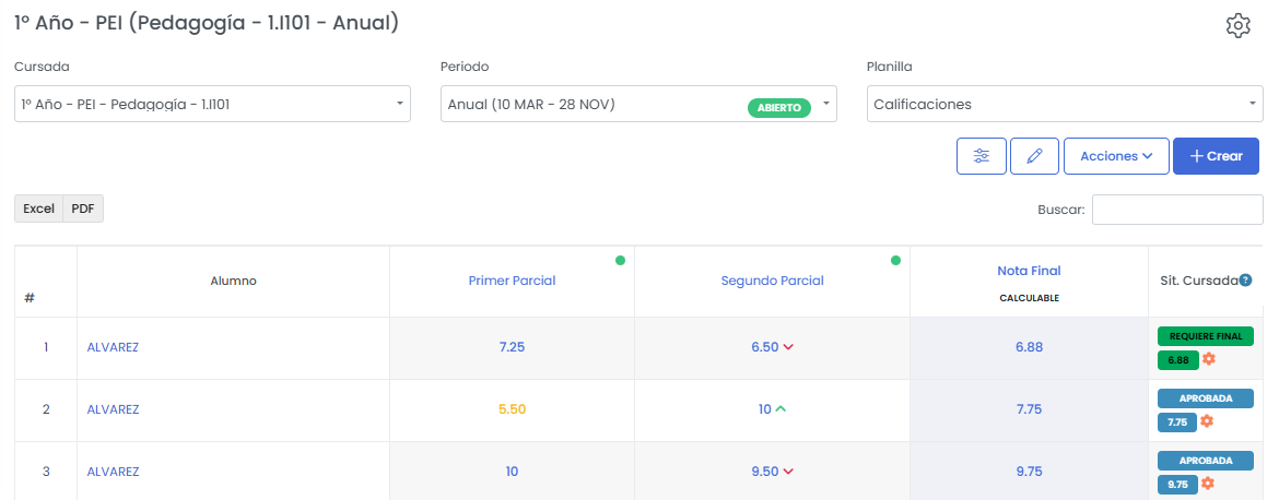 Al hacerlo, el sistema recalculará los estados finales de los alumnos en base a la nueva información.
