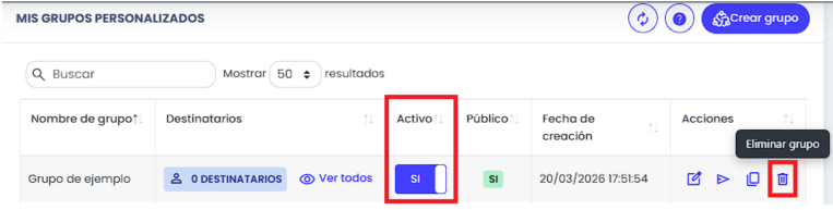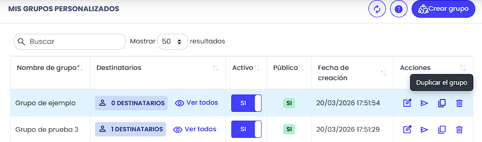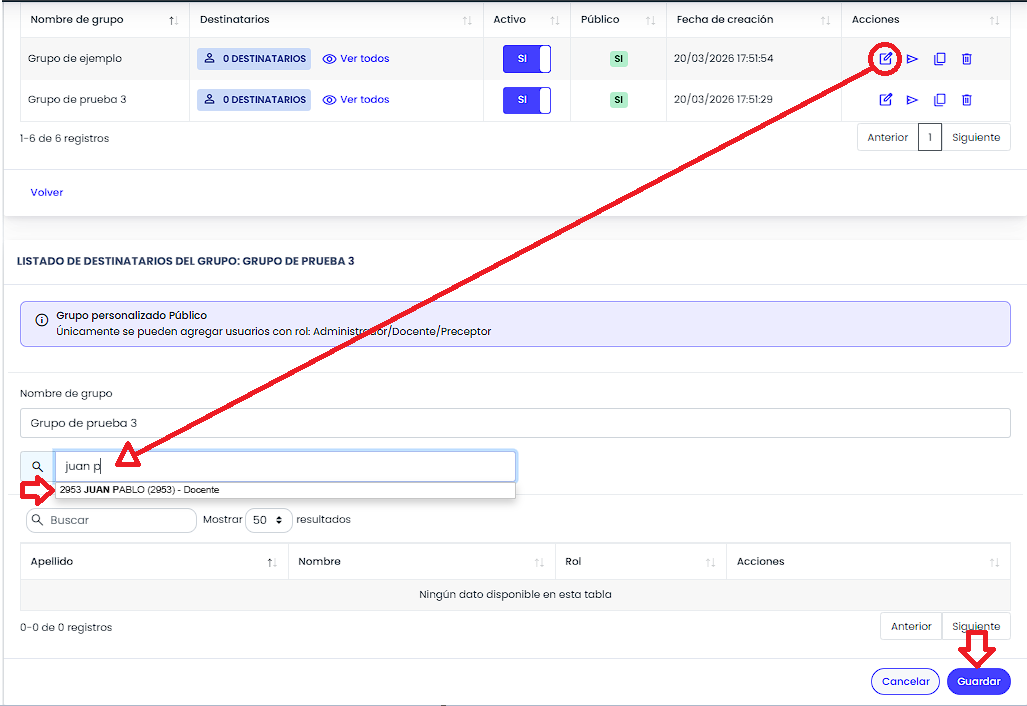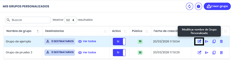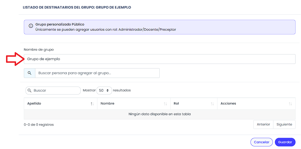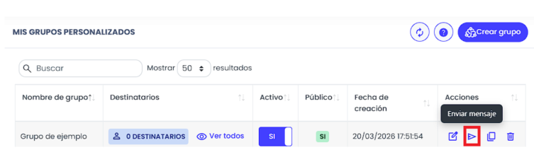 Grupo personalizado de Mensajería. En lugar de buscar destinatario por