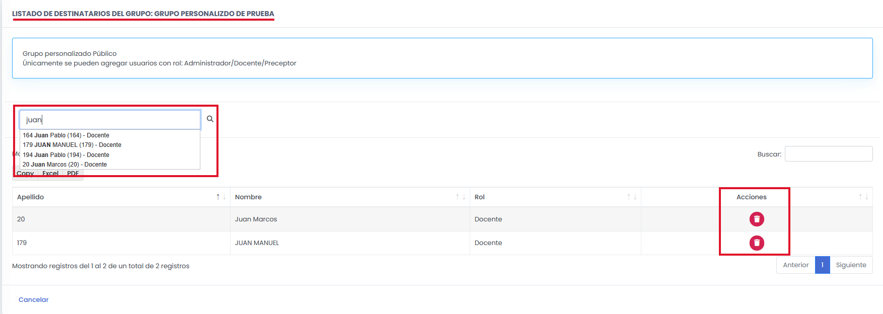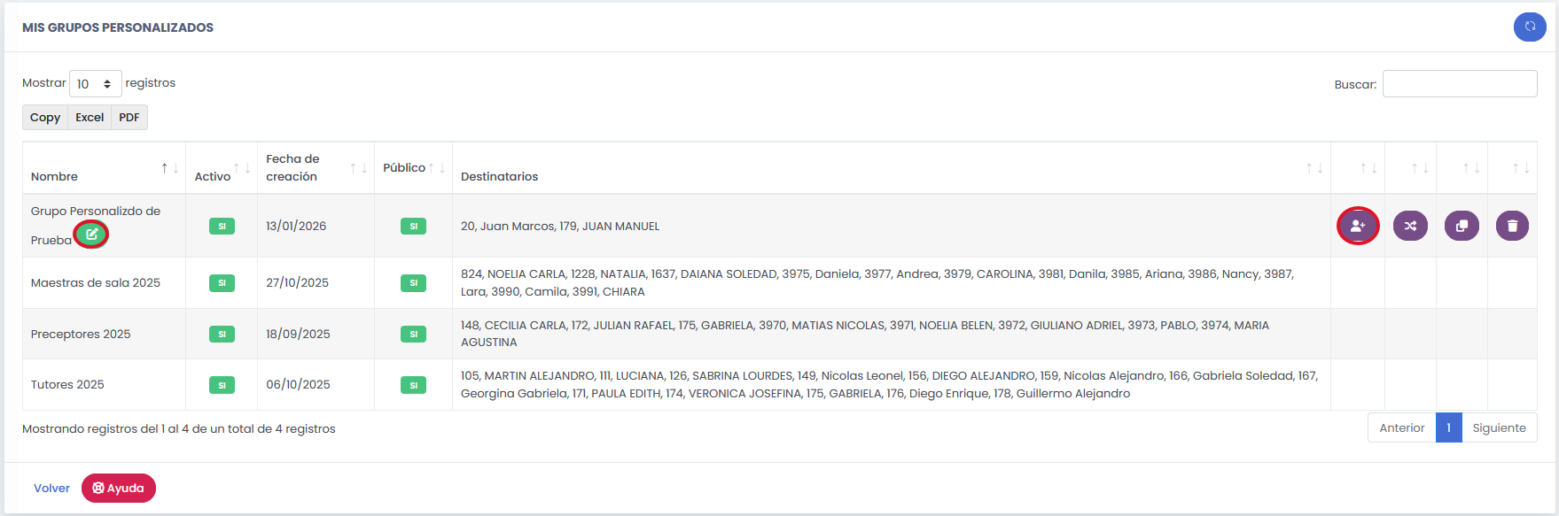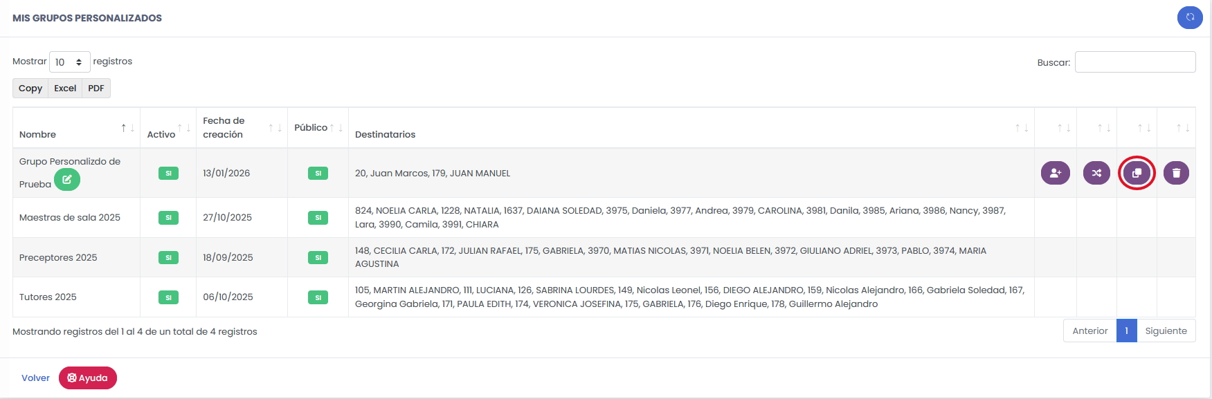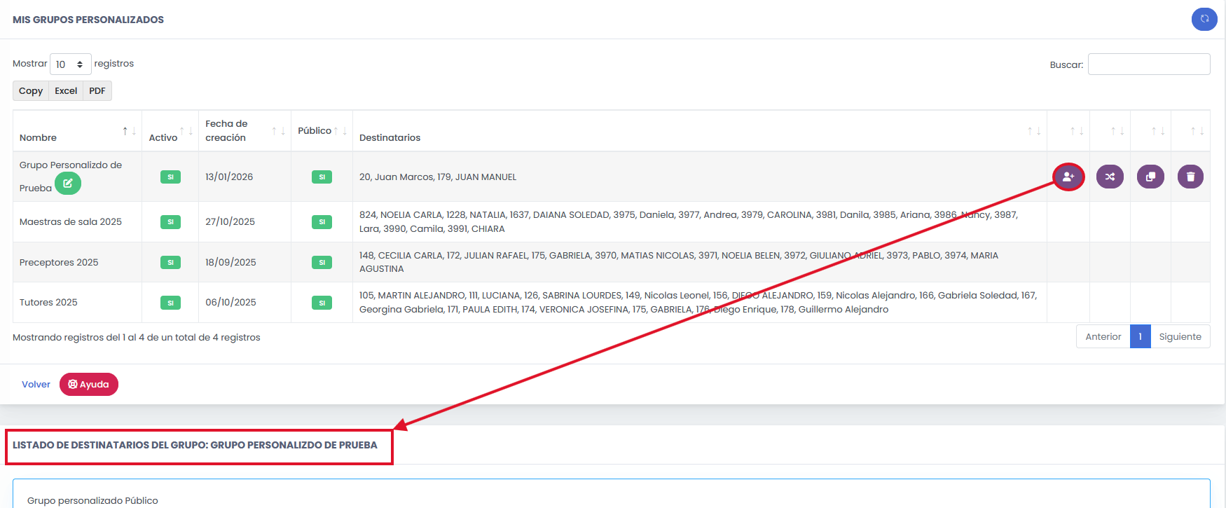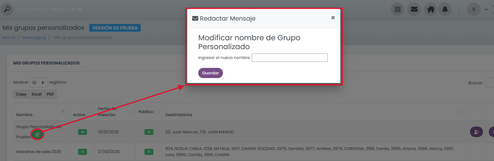 Si suele enviar mensajes al mismo conjunto de personas, puede crear un Grupo personalizado de Mensajería. En lugar de buscar destinatario por destinatario, usted simplemente selecciona el nombre del grupo creado y el sistema enviará el mensaje a todos los integrantes de forma simultánea. Es la solución ideal para comunicaciones recurrentes con equipos específicos o comités.