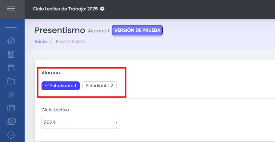 Selección: Si tiene más de un estudiante a cargo, seleccione al que desea consultar en el selector de perfiles.
