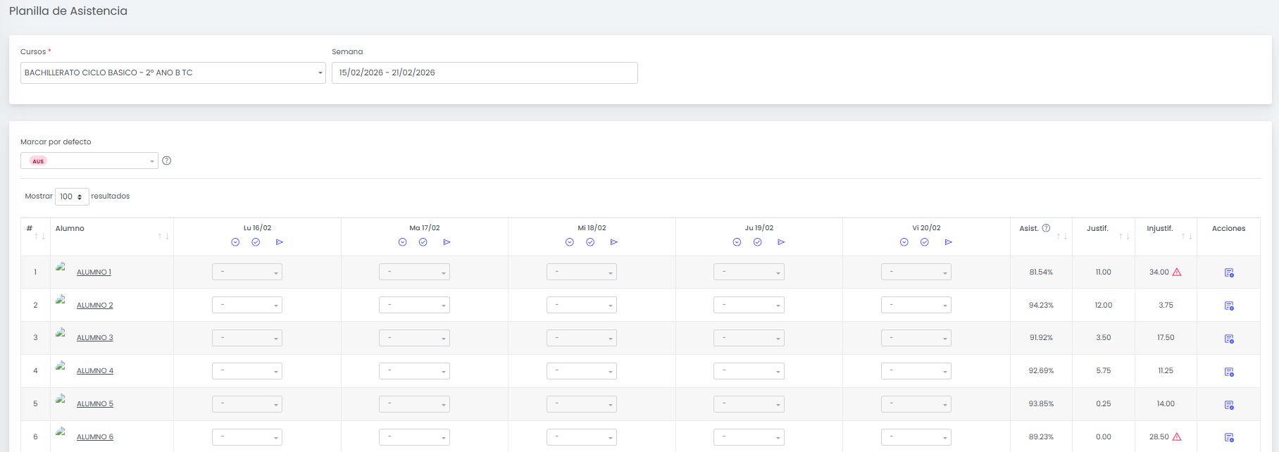 Es útil cuando ya se cargaron algunas ausencias y se desea completar rápidamente el resto como presentes.