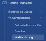 Una vez habilitado primero ingresamos a Gestión Financiera -> Configuración -> Medios de pago