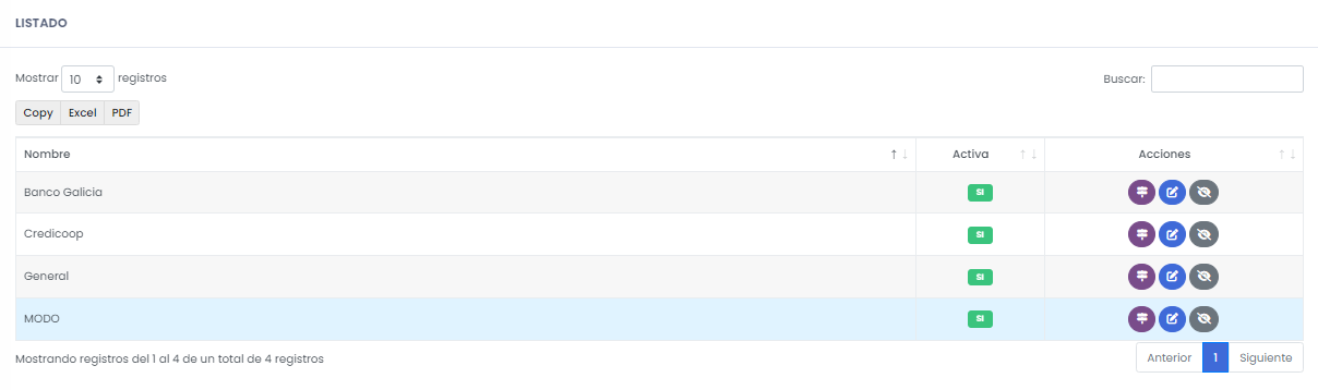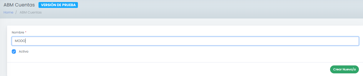 2 - Puede usar una cuenta o crear una nueva para separar todo lo que llega por ese medio de pago. En este caso vamos a generar una cuenta que se llame MODO y activarla.