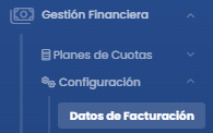3 - Luego ingresamos a los datos de facturación Gestión Financiera -> Configuración -> Datos de Facturación
