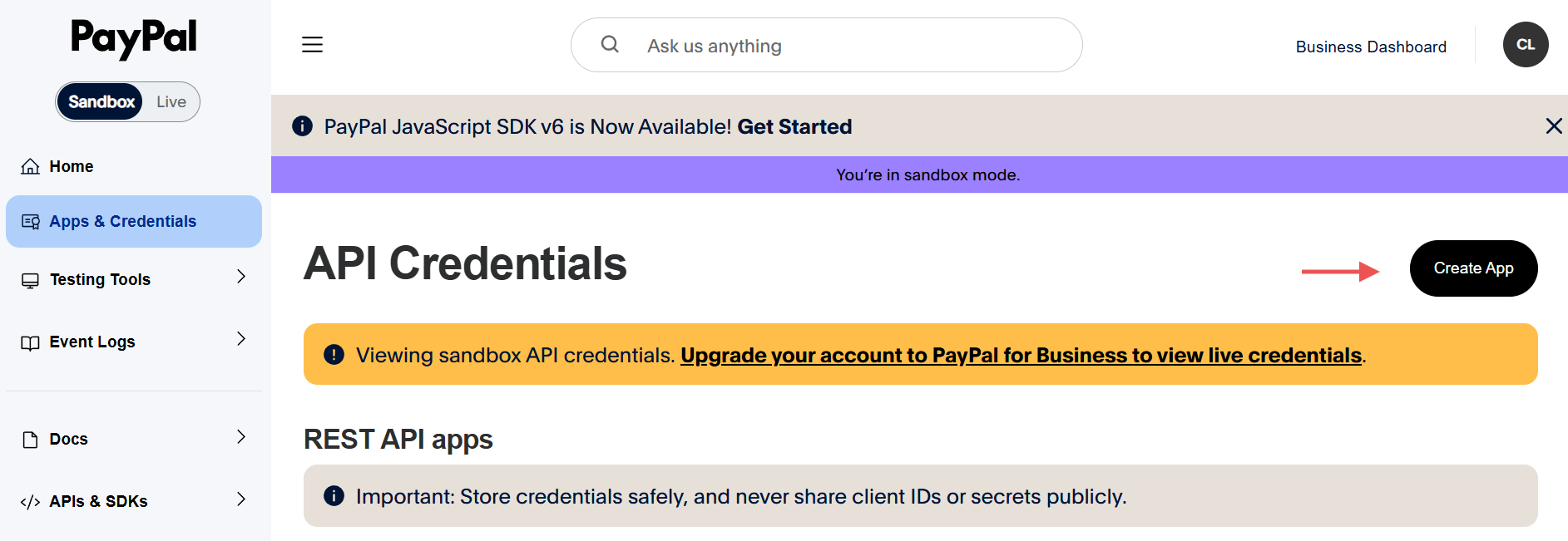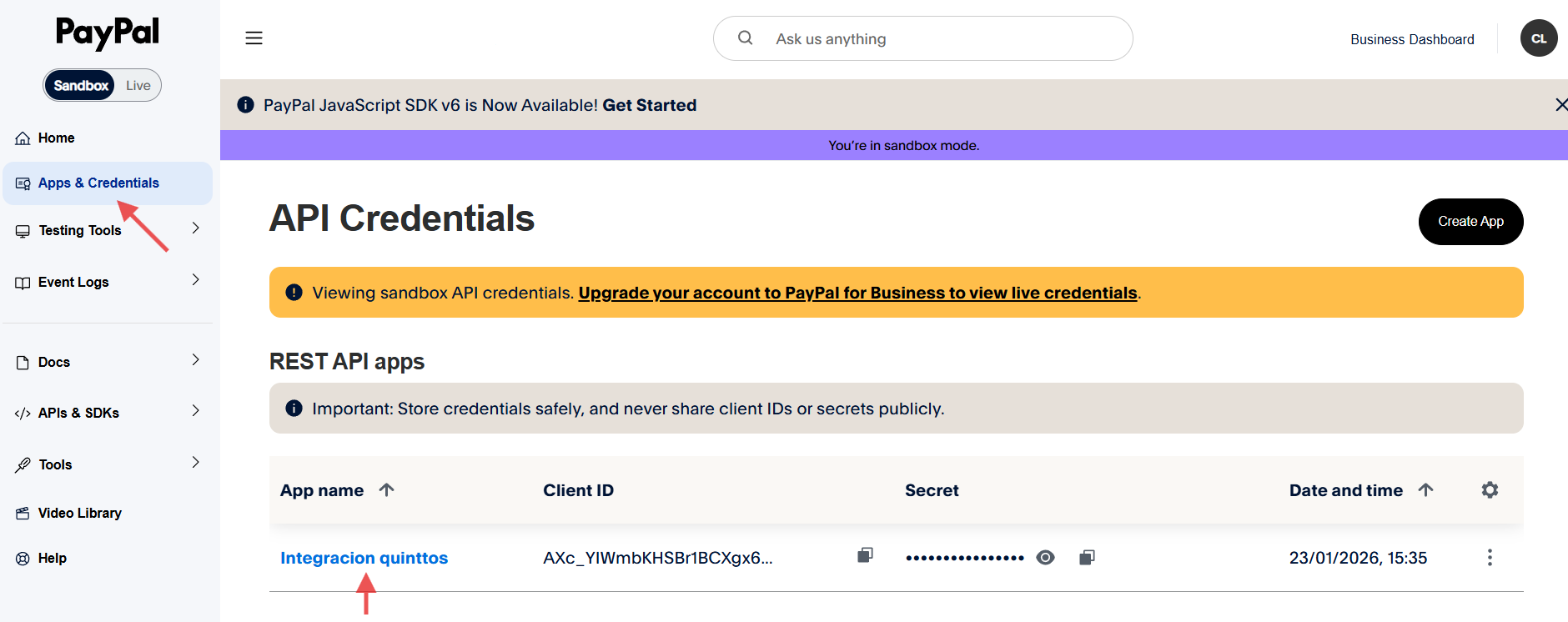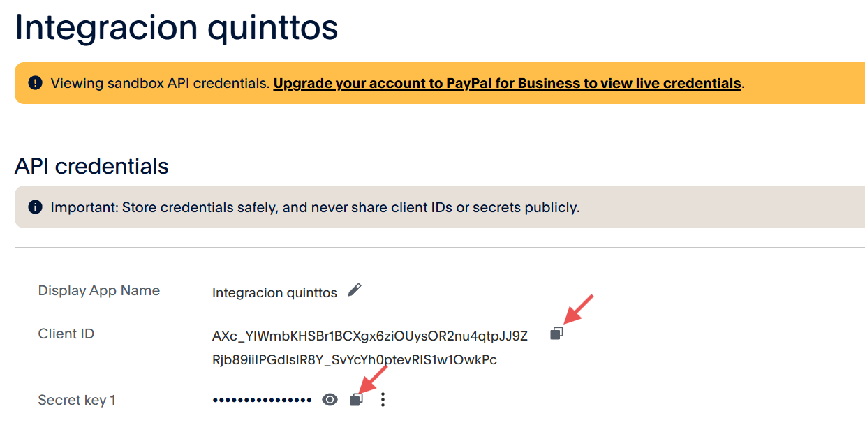 Es importante que la cuenta de PayPal sea Business para poder configurar credeciales 'Live' (De producción)
