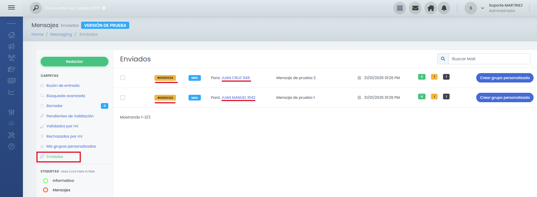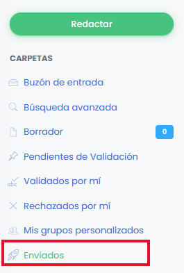 Buzón de Entrada: Muestra todos los mensajes recibidos. Pendiente de Validación: Muestra mensajes que requieren una validación del sector administrativo antes de ser enviados. Validados por mí: Listado de mensajes que fueron validados por mí. ...