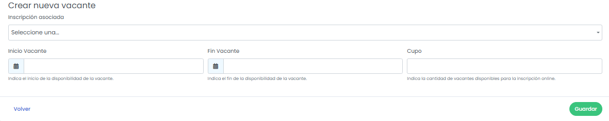 Inicio Vacante: Indica la fecha en que de disponibilidad los cupos de la vacante.