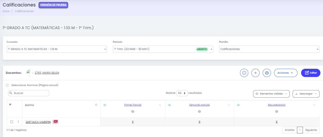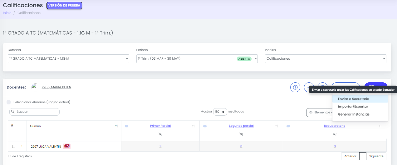 Finalizado el proceso de edición, las notas quedarán en borrador y las mismas se deberán enviar a secretaria para posteriormente ser publicadas.