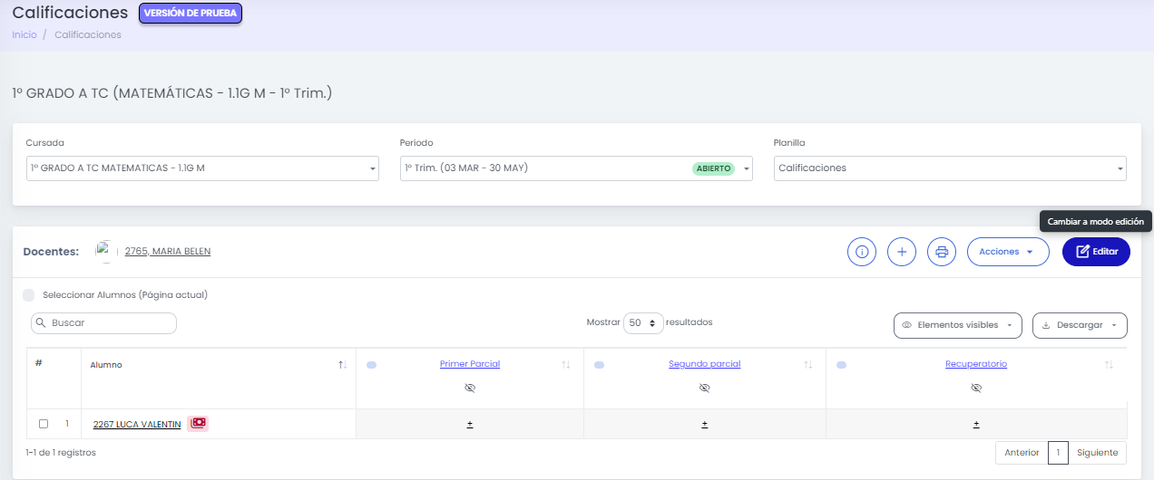 "Ver Listado de Calificaciones" en la cursada cuyas notas queremos generar/editar.