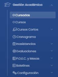 Para generar/editar las notas de una cursada deberemos de ir a, desde el menú lateral izquierdo,