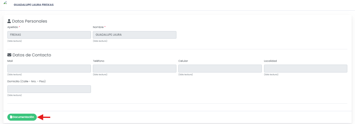 En la sección de Datos Personales va a encontrar el botón de Documentación